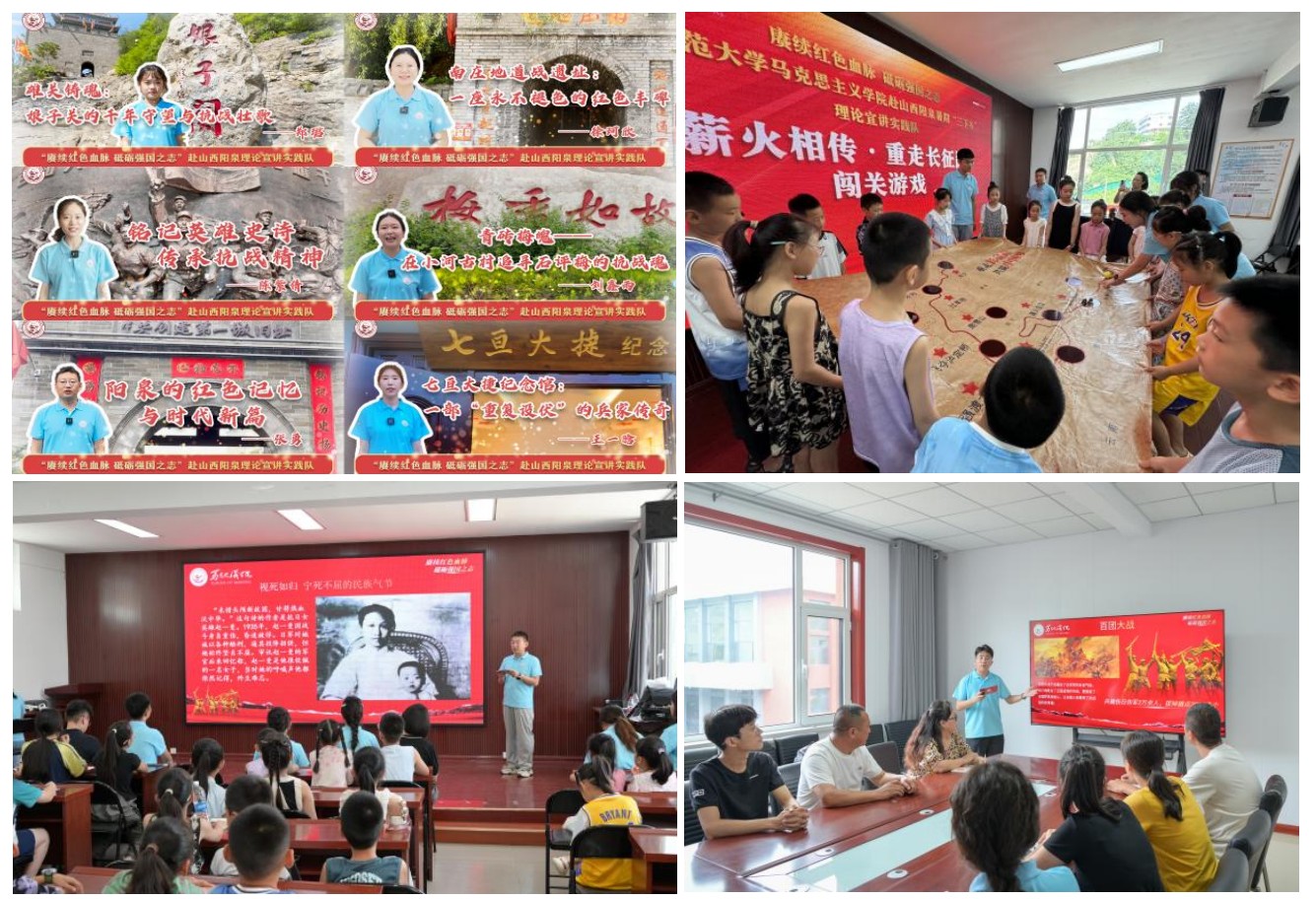 实践队深度融合数字技术与红色教育,构建微课创作、实景推演、情景体悟、分众传播四位一体的宣讲体系,精心打造了“红色微课创作工坊”,6部系列微课通过社区宣讲、校园分享、网络推送实现三维覆盖;在娘子关遗址,依托地形沙盘实景推演“一夫当关”的防御智慧,“脚本+实景+互动”模式深化战略思想;“薪火相传·重走长征路”情景教学通过团队协作攻克“雪山草地”,参与者在游戏攻关中内化革命精神;宣讲针对不同群体,形成分众化系列内容,面向中小学生侧重故事化表达、面向社区群众突出“身边历史”、面向政府部门则聚焦调研数据,彰显青年理论传播者的使命担当。