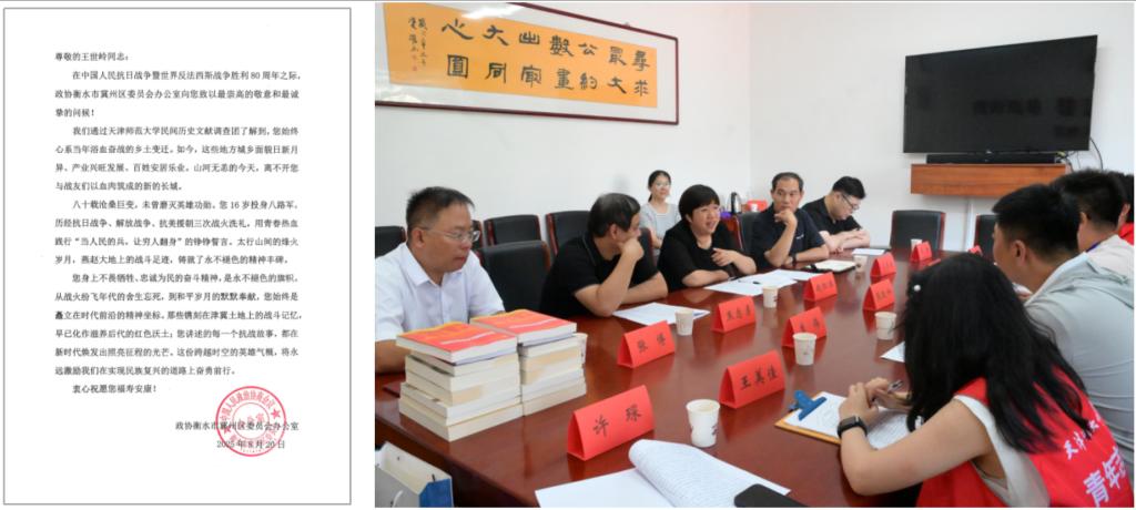 基于扎实的前期调研,调查团将对红色遗址保护现状的细致分析以及对传承红色精神的具体思路,系统梳理成调查报告与咨政建议,提交至政协衡水市冀州区委员会,并促成对王世岭老战士的回信。老战士获悉今日城乡新貌与人民感念之情,倍感欣慰。这场跨越时空的对话因调查团队的努力得以圆满实现。