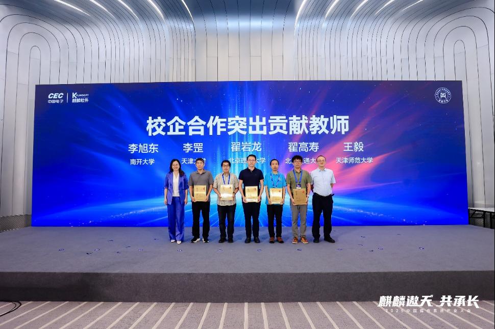 本站讯(通讯员 梁月)近日,以“共承长·聚生态·育英才”为主题的2025操作系统与网信人才生态大会在北京隆重举行。本次大会由麒麟软件公司主办,汇聚了工业和信息化部、教育部等相关部委领导,以及来自全国顶尖高校、科研机构和产业链上下游企业的200余名专家学者,共同擘画人工智能时代下操作系统与网信人才生态建设的新蓝图。我校电子与通信工程学院(人工智能学院)作为麒麟软件的重要战略合作伙伴应邀出席活动。大会上,我校电子与通信工程学院(人工智能学院)荣获“校企合作优秀院校”称号,教师王毅荣获“校企合作突出贡献教师”称号。