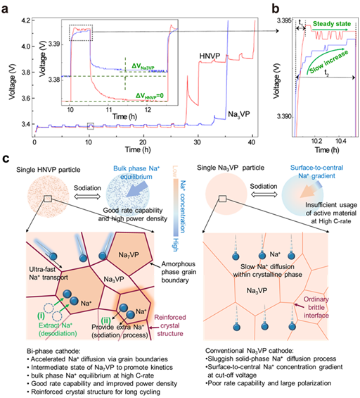 近日,国产亚洲精品美女久久久_99久无码中文字幕一本久道_亚洲成AV人影院_亚洲AV影院一区二区三区 狠狠躁夜夜躁人人爽天天不卡_国产激情久久久久影院老熟女_精品性高朝久久久久久久化学学院毛文峰课题组根据相图调节反应组分巧妙的将Na3V2(PO4)3(Na3VP)与Na7V4(P2O7)4PO4(Na7VP)匹配,合成了一种具有均质杂化的新型复合材料hybridized Na3V2(PO4)3 (HNVP),实现快速的钠离子存储。这种均质杂化使HNVP具有高达50C的超高速率,在48.85mg cm-2的面密度下实现了3.81 mAh cm-2的商用面容量,同时在10C倍率下2100次循环中容量衰减率低至 0.0051%。此外HNVP//NaTi2(PO4)3全电池也表现出优异的速率性能和超过1500次循环的循环稳定性。该文章发表在Energy Storage Materials上。国产亚洲精品美女久久久_99久无码中文字幕一本久道_亚洲成AV人影院_亚洲AV影院一区二区三区 狠狠躁夜夜躁人人爽天天不卡_国产激情久久久久影院老熟女_精品性高朝久久久久久久毛文峰教授、李德军教授和艾果教授为本文通讯作者,国产亚洲精品美女久久久_99久无码中文字幕一本久道_亚洲成AV人影院_亚洲AV影院一区二区三区 狠狠躁夜夜躁人人爽天天不卡_国产激情久久久久影院老熟女_精品性高朝久久久久久久耿颖为本文第一作者。