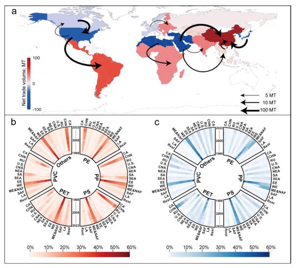 塑料因其耐用性、经济性和多功能性,被广泛应用于包装、建筑、电子等多个领域,已成为现代社会的重要大宗商品。然而,与之伴随的是生产激增带来的巨大环境挑战,塑料废弃物已成为全球固废管理体系和可持续发展目标(SDGs)实现过程中的重要障碍。在塑料全生命周期中,国际贸易不仅贯穿于原材料至产品制造各阶段,还对温室气体排放、资源分布及环境压力转移具有深远影响。尤其近年来,煤基塑料生产兴起,使得塑料贸易与气候议题紧密关联。研究显示,过去35年间初级塑料的全球累计贸易量达3411百万吨(MT),其快速增长始于20世纪90年代全球化与贸易自由化浪潮,年贸易量从1988年的8.9 MT增长至1999年的73.0 MT。2000年以后,贸易增速趋于稳定,而自2013年“绿篱行动”起,中国逐步收紧塑料废弃物进口,2017年全面禁止进口生活及工业废塑料,迫使国内通过进口初级塑料来弥补原料缺口,进口量从2016年的27.5 MT激增至2020年的42.7 MT。该趋势暴露出当前全球塑料治理面临的两大核心困境:首先,产业体系对燃料基初级塑料的依赖不断加深。尽管全球塑料污染问题日益严峻,替代材料的产能仍远未形成规模。在中国“禁废令”实施后,原本依赖废塑料进口的中国,不得不通过进口初级塑料来填补原料缺口,间接推高了全球塑料产量。这种以生产端扩张来应对资源瓶颈的模式,放大了下游固废处理体系的压力。其次,政策影响具有高度外溢性,缺乏全球协调机制。另外,地方性环保政策可能在全球范围内引发“问题转移”,如“禁废令”导致中国本土回收企业外迁,部分再生能力转移至周边国家,而这些地区往往缺乏足够的监管与基础设施,从而形成新的环境隐患。与此同时,当前全球范围内多数塑料政策聚焦于一次性制品(如塑料袋),却忽略了塑料源头生产与流通层面的问题,导致整体治理效果有限。因此,需要在全球范围内开发更全面、更系统的针对不同塑料生命周期的治理政策。