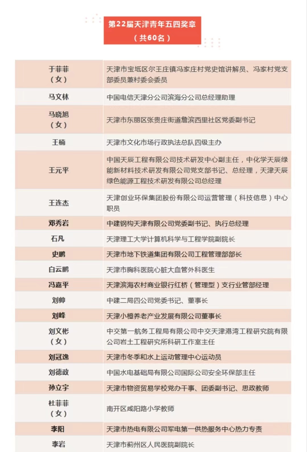 校团委消息(通讯员 孟亮)为深入学习宣传贯彻党的二十大精神,充分发挥青年典型模范带头作用,团结引领全市广大团员青年挺膺担当、砥砺奋斗,汇聚青春动能,建功“十项行动”,共青团天津市委员会授予60名同志为第22届天津青年五四奖章称号,授予10个集体为第22届天津青年五四奖章集体称号。我校历史文化学院青年教师陈晨获评第22届天津青年五四奖章称号。